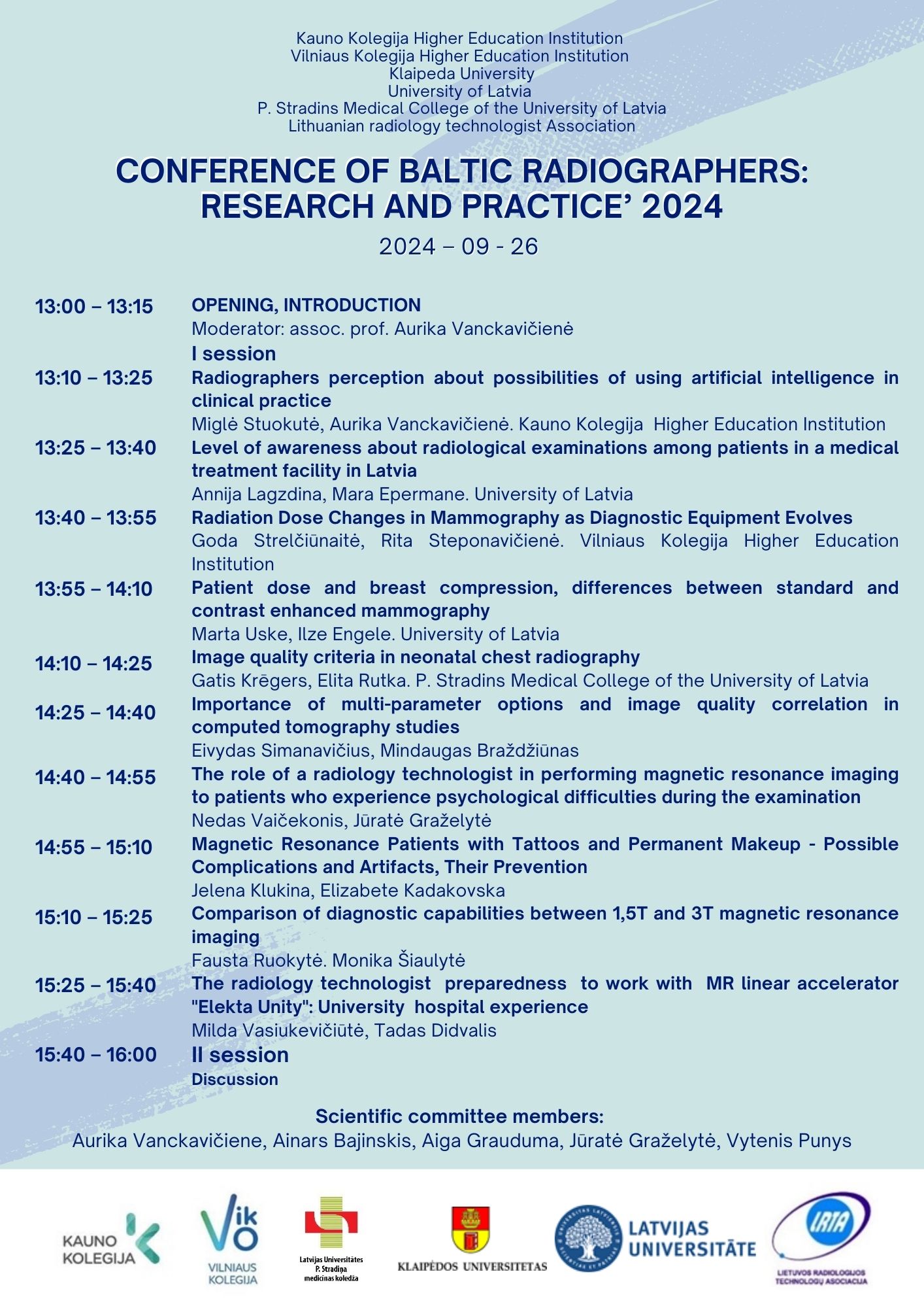 CONFERENCE OF BALTIC RADIOGRAPHERS: RESEARCH AND PRACTICE’ 2024″.