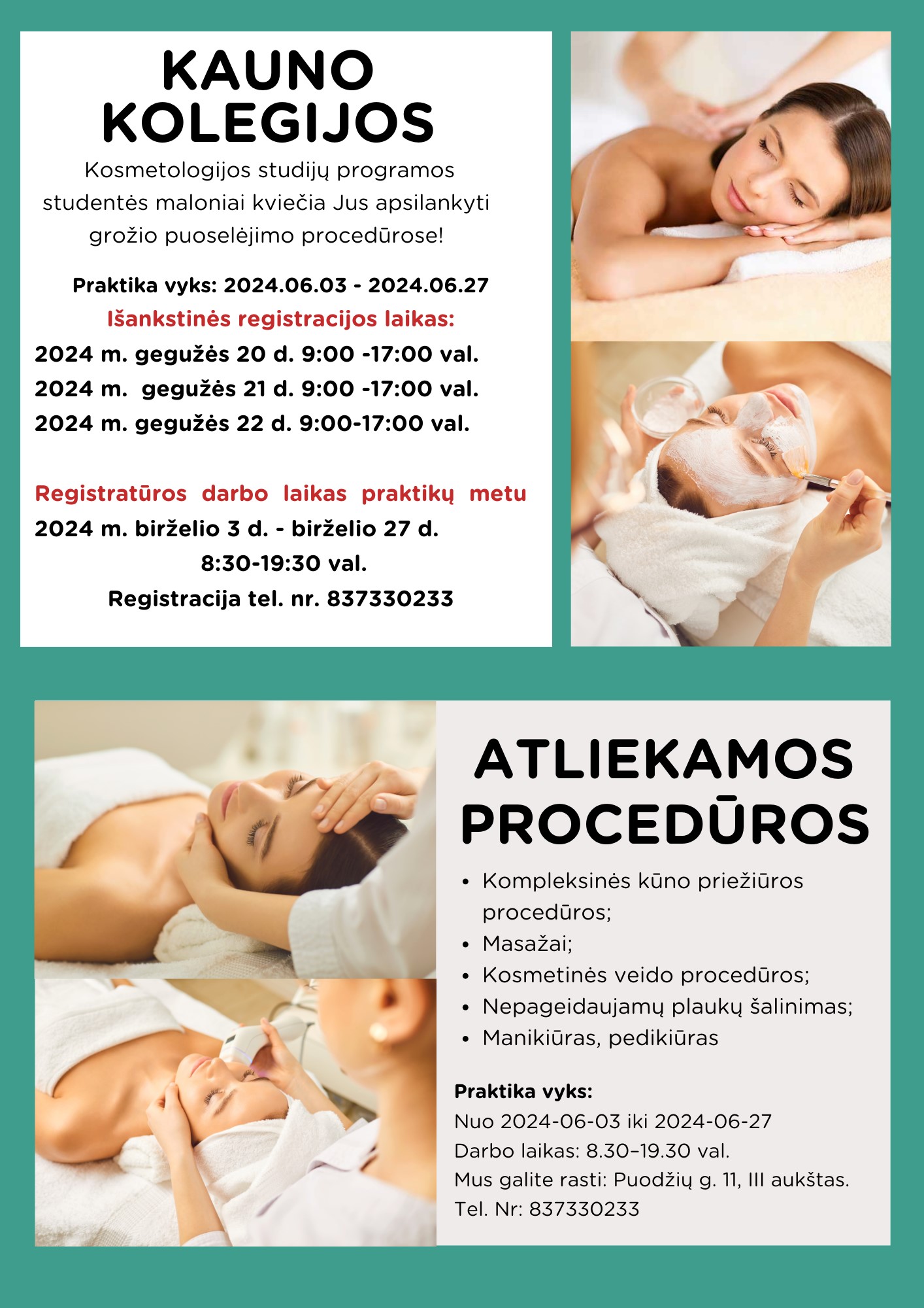 Medicinos fakulteto Kosmetologijos studijų programos studentės maloniai kviečia apsilankyti grožio puoselėjimo procedūrose.