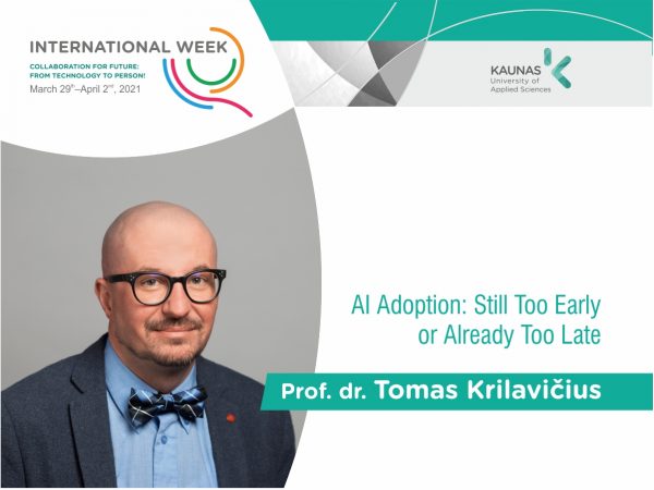 Pranešimą „AI Adoption: Still Too Early or Already Too Late“ skaitys prof. Tomas Krilavičius – Vytauto Didžiojo universiteto Informatikos fakulteto dekanas. Jo mokslinių tyrimų kryptys yra dirbtinio intelekto taikymai, kalbos technologijos, mokslinės infrastruktūros. Prof. T. Krilavičius yra NATO mokslo ir technologijų organizacijos Informacinių technologijų sekcijos narys (NATO STO IST), Lietuvos dirbtinio intelekto asociacijos narys.