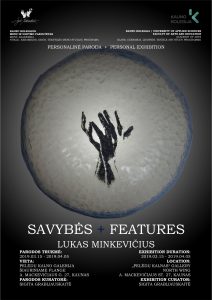 „Besimokydamas mokykloje jaunas žmogus neretai užsisklendžia ir atėjus studijuoti, jam prireikia laiko adaptacijai, savęs išlaisvinimui per kūrybą“, – sako S. Grabliauskaitė, pasakodama, kaip kilo idėja kartu su studentu surengti personalines parodas, – „Viskas prasidėjo paprastai – nuo rėžtuko, galinčio pjauti stiklą apvaliai, kuriuo Lukas labai susidomėjo. Išmokti pjauti apvalią formą studentui buvo iššūkis, tačiau su juo jis puikiai susitvarkė“, – antrakursį pagiria programos koordinatorė. Todėl L. Minkevičiaus parodoje „Savybės“ eksponuojamuose stiklo kūriniuose vyrauja aptaki, pusapvalė, glotni forma. Kadangi studentas domisi gamta – jos formomis ir struktūromis – gamtiškus motyvus jis perkėlė ir į savo kūrinius. Greta objektų iš stiklo, parodoje eksponuojami preciziški studento piešiniai, sukurti paskaitos Gamtos formų studijos metu. Personalinę parodą papildo ir L. Minkevičiaus batikos darbai, kuriuose studentas vaizduoja senąją architektūrą.