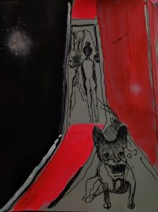 Tapytojo piešiniuose, kaip ir drobėse, sapnų, fantazijų pasaulio vaizdiniai mainosi su supančios realybės fragmentais. Nelieka skirties tarp to, kas tikra, o kas – pramanyta. Atsiveria naujas – A. Martinaičio – pasaulis, kuriame knibžda fantasmagoriškos būtybės, animalistiniai veikėjai, personažai iš vaikystės pasakų.