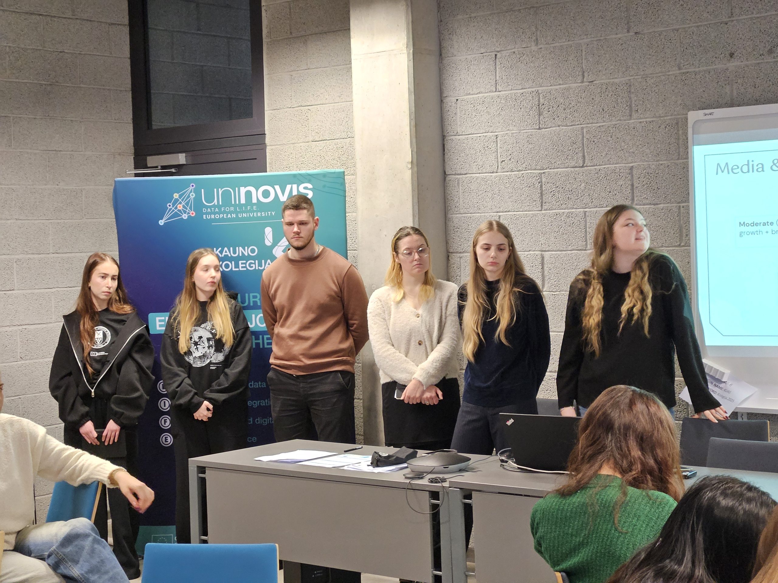 Studijų metu studentai dalyvavo paskaitose, praktiniuose užsiėmimuose, diskusijose ir kūrybinėse veiklose, orientuotose į verslo komunikacijos, rinkodaros ir viešojo kalbėjimo kompetencijų ugdymą. Programos turinys apėmė profesinės komunikacijos anglų kalba stiprinimą, socialinės atsakomybės ir etiško vartojimo temas, rinkodaros pagrindus, argumentavimo ir debatų strategijas bei sezoninės komunikacijos ir socialinių tinklų vaidmenį verslo kontekste. Ypatingas dėmesys skirtas praktiniam ir patyriminiam mokymuisi, skatinant studentus taikyti teorines žinias realiose situacijose.