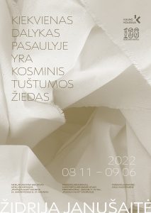 Apie parodą „Kiekvienas dalykas pasaulyje yra kosminis tuštumos žiedas” menininkė sako, jog savo darbais vienaip ar kitaip kalbėdama apie tą patį ar kažką labai artimo vienas kitam, leisdama vienai temai švelniai pereiti į kitą, vienam kūriniui išplaukti iš kito, ji atveria budistinės Tuštumos esatį. „Ši tuštumos būsena kelia nuolatinę, džiugesio pilną nuostabą: joje vis atsitinkančiais susitikimais, atvertimis, galimybėmis, žinojimu, vidinės savo ir kito jėgos pajautimu ir tuo pačiu – pastoviu kitimu. Tai gali būti labai aktyvus, staigus veiksmas, kurio nespėju pamatyti, priimti, suvokti, bet jis įvyksta, arba – labai lėtas veiksmas, kurio nematau, nesuvokiu, nejaučiu, bet jis taip pat vyksta. Aš turiu galimybę tai patirti, perlipti kito suvokimo, kitos būsenos slenkstį”, – sako Ž. Janušaitė.