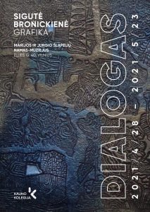 Iki gegužės 23 d. Marijos ir Jurgio Šlapelių name – muziejuje (Pilies g. 40, Vilnius) eksponuojama Kauno kolegijos Menų ir ugdymo fakulteto Menų akademijos dėstytojos, respublikinių ir tarptautinių parodų dalyvės, kurios mažo formato piešiniai ir grafikos darbai eksponuoti Makedonijoje, Serbijoje, Lenkijoje, Latvijoje, JAV, Bulgarijoje, Australijoje, Japonijoje, Kroatijoje ir Estijoje, grafikės Sigutės Bronickienės personalinė paroda „Dialogas“, kviečianti žiūrovą užmegzti pokalbį, inspiruotą kūrinių spalvinių niuansų, faktūrų ir formų.