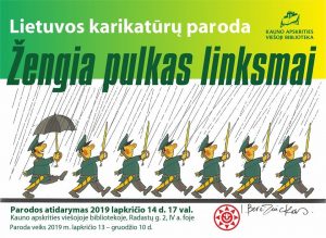 Iki gruodžio 10 d. Kauno apskrities viešosios bibliotekos IV a. fojė (Radastų g. 2, Kaunas) veikia Lietuvos dailininkų karikatūrų paroda „Žengia pulkas linksmai“, kurioje eksponuojami Kauno kolegijos Menų akademijos Dizaino studijų programos dėstytojo, aktyviai dalyvaujančio ir respublikinėse, ir tarptautinėse satyrinės grafikos parodose, Alvydo Jonaičio kūriniai.