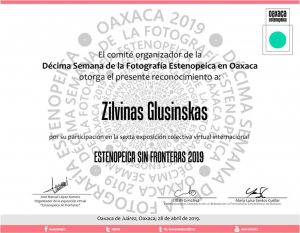 Vienas iš pinhole fotografijos meistrų Lietuvoje yra Kauno kolegijos Menų akademijos Fotografijos studijų programos lektorius Žilvinas Glušinskas, kuris dalyvauja tarptautinėje šeštojoje pinhole technika sukurtų fotografijų parodoje „Estenopeica sin fronteras 2019“ surengtoje Oaksaka mieste, Meksikoje. Ž. Glušinskas eksponavo kūrinius „Asakusa Dog“, „Tokyo Rainbow“, su kuriais susipažinti galite čia (17:37).